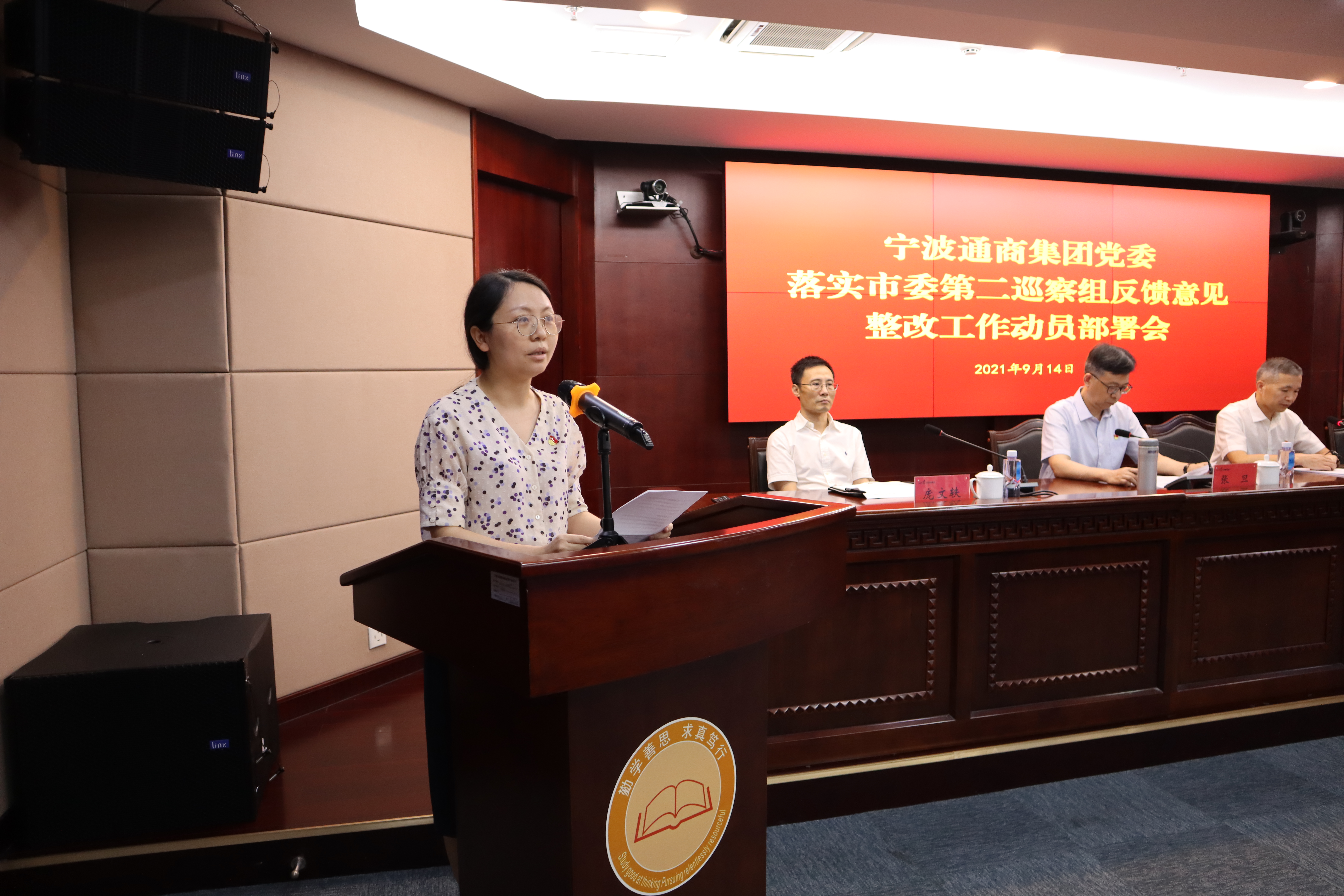 • 2021年9月14日下午,宁波通商集团党委落实市委第二巡察组反馈意见整改工作动员部署会召开。集团党委副书记、副董事长、总经理张旦作动员讲话,会议由集团党委副书记、副总经理梅旭辉主持。